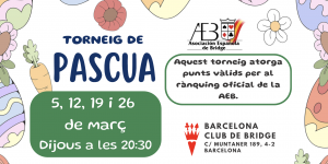 Aquest març, el Barcelona Club de Bridge us convida a participar en un torneig excepcional que combina l’estratègia, la diversió i uns premis extraordinaris. Hem dissenyat una experiència competitiva i …