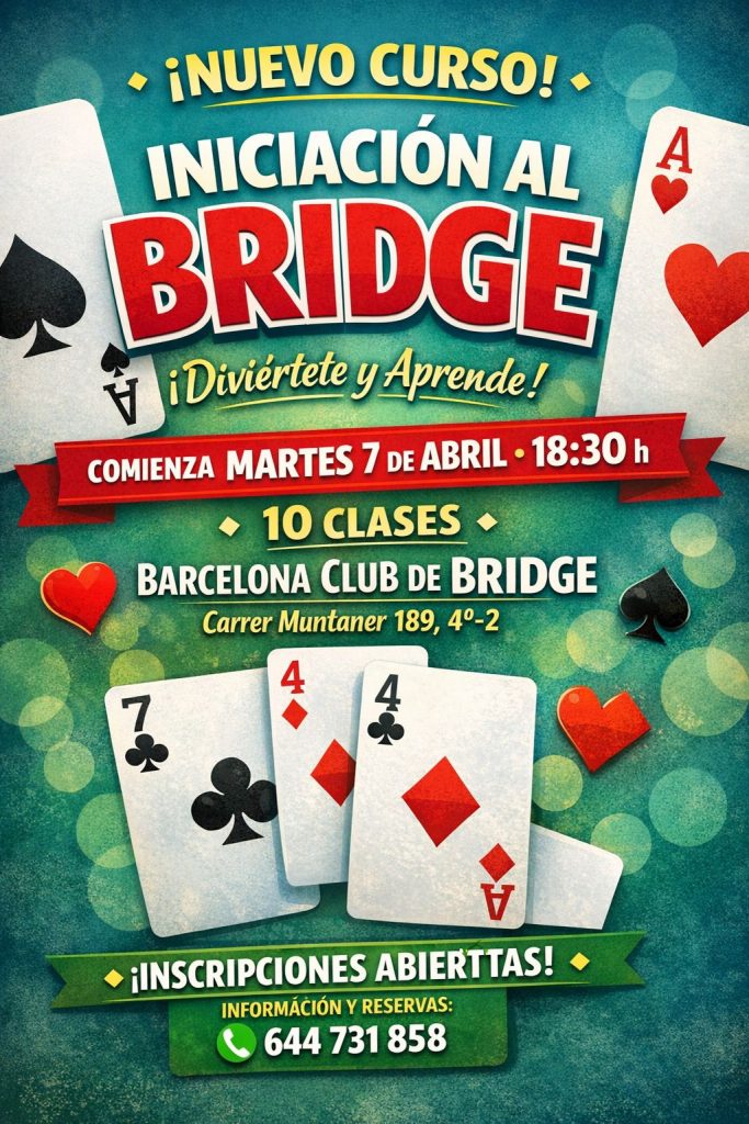 Bienvenido a nuestra escuela de bridge en el Barcelona Club de Bridge, dónde ofrecemos clases para principiantes y jugadores avanzados. Nuestros profesores, altamente cualificados, te enseñarán todo lo que necesitas saber para aprender y mejorar tu bridge. Ofrecemos un ambiente amigable y divertido dónde puedes aprender y practicar el bridge con otros aficionados. Las  clases son presenciales y en línea para que puedas aprender a tu propio ritmo.